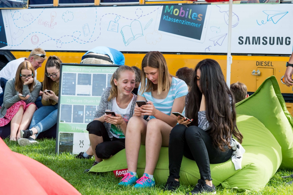 Samsung has created a classroom on wheels, touring across Austria in a yellow schoolbus during June/July and September/October of 2016. IT trainers are visiting 11 cities to teach roughly 1,400 children about programming apps and robots. The offering is designed for beginners, guaranteed to be fun and entirely free.