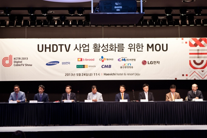 삼성전자가 24일 현대 HCN, CJ 헬로비전, C&M, CMB, 그리고 티브로드 등 국내 5대 케이블 사업자와 스마트TV를 통한 4K UHD 방송 서비스 사업 의향서(MOU)를 체결하고 4K UHD 방송 활성화를 위해 상호 협력해 나가기로 합의했다. 이번에 삼성전자가 국내 5대 케이블 사업자와 제휴를 맺은 4K UHD 방송은 풀HD(1920×1080) 보다 4배 (3840×2160) 높은 800만 화소의 해상도를 자랑하는 차세대 고화질 영상이다.
