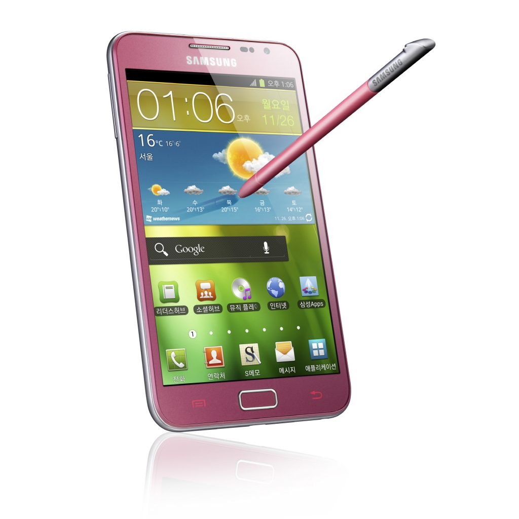 Samsung Electronics introduces pink colored Galaxy Note. Galaxy Note has been hailed by the customers as a smart mobile device of a new concept, selling more than 5 million units calculated from the supply side.