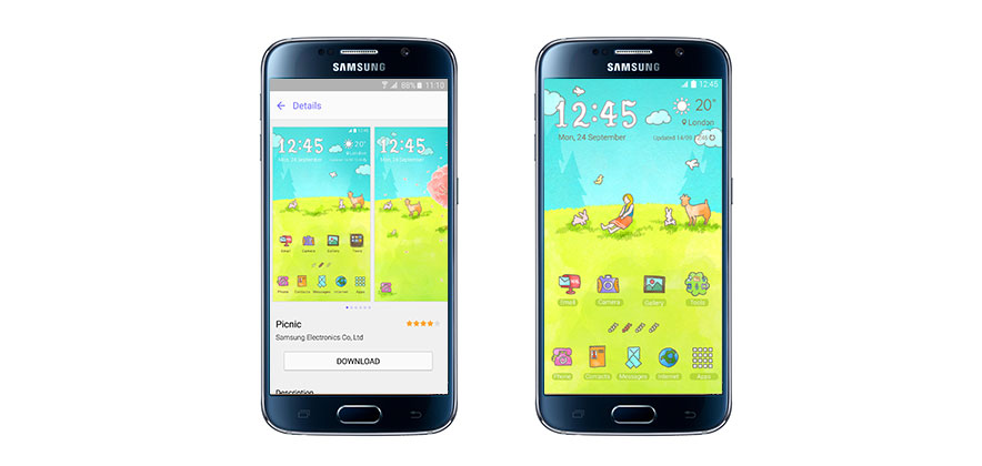 Samsung is offering a wide variety of different Theme options for the Galaxy S6 and S6 edge. These will allow you to transform your user experience, by applying a Theme that fits your personal taste and lifestyle. Marvel and Lego are just a few of the great brands that have designed fun, cute and artistic Themes for S6 and S6 edge users. These Themes transform the look and feel of the home and lock screens, icons and 14 applications such as Phone, Message and Clock.