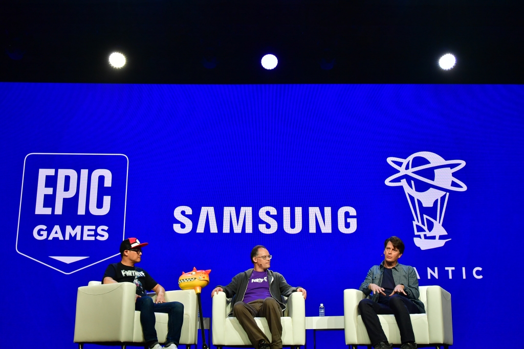 (From left) Thomas Ko, VP at Samsung Electronics; Tim Sweeney, CEO of Epic Games; John Hanke, CEO of Niantic.