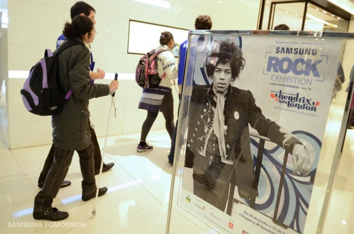 In the partnership with the Dorina Nowill Foundation, an organization dedicated to the social inclusion of people with visual impairments, Samsung paired company volunteers with Dorina participants. Together, they visited an exhibition about the life and work of Jimi Hendrix.