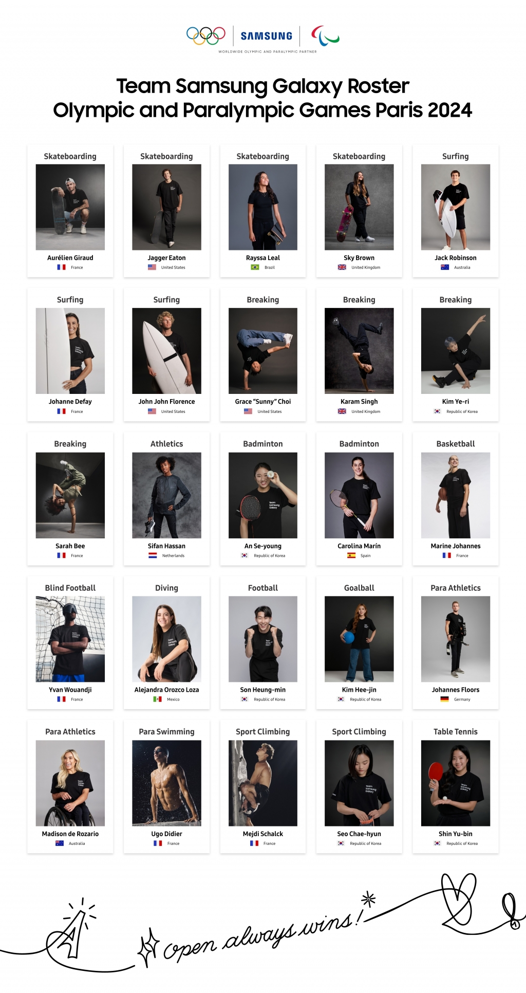 Samsung Electronics, a Worldwide Olympic and Paralympic Partner, today announced its official theme for the Olympic and Paralympic Games Paris 2024, ‘Open always wins.’ The message articulates Samsung’s belief that with an open mind, every new experience becomes a meaningful achievement that opens up new perspectives and infinite possibilities. It will serve as the heart of Samsung’s Paris 2024 program and will be brought to life in its various activations leading up to and during the Games, and through the remarkable athlete ambassadors of Team Samsung Galaxy, who were also announced today.