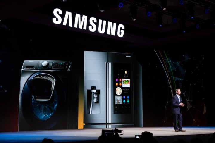 John Herrington, SVP at Samsung Electronics America, talked about innovations in home appliances at the Samsung Press Conference at CES 2016 on Jan. 5.