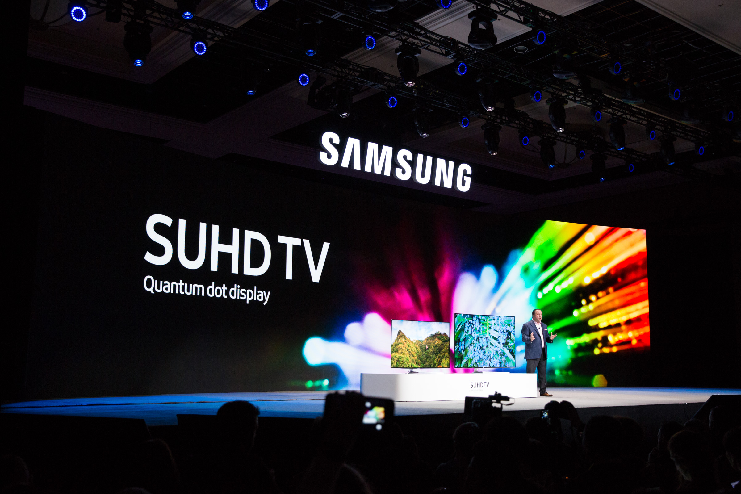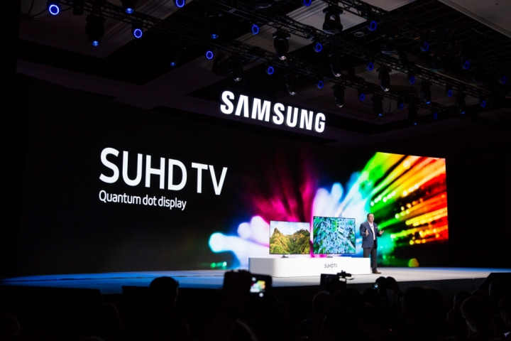Joe Stinziano, EVP at Samsung Electronics America, explained the superior picture quality that comes from Quantum dot display technology. From the Samsung Press Conference at CES 2016 on Jan. 5.