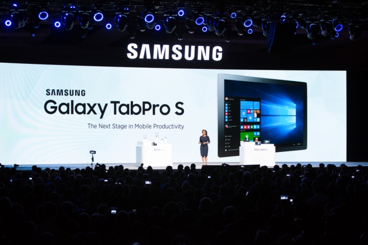 Alanna Cotton, VP at Samsung Electronics America, described the Galaxy TabPro S at the Samsung Press Conference at CES 2106 on Jan. 5.
