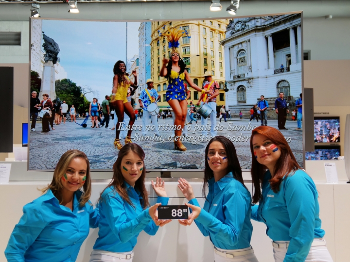 10일(현지시각) 모나코에서 열린 삼성 중남미 포럼에서 모델들이 삼성전자 프리미엄 TV 'SUHD TV'를 선보이고 있다.