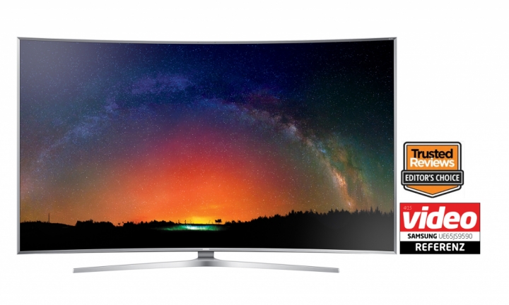 삼성전자의 2015년형 SUHD TV가 유럽 주요 IT 매체로부터 잇따라 호평을 받았다. 사진은 삼성 SUHD TV JS9500과 리뷰 매체 로고 이미지