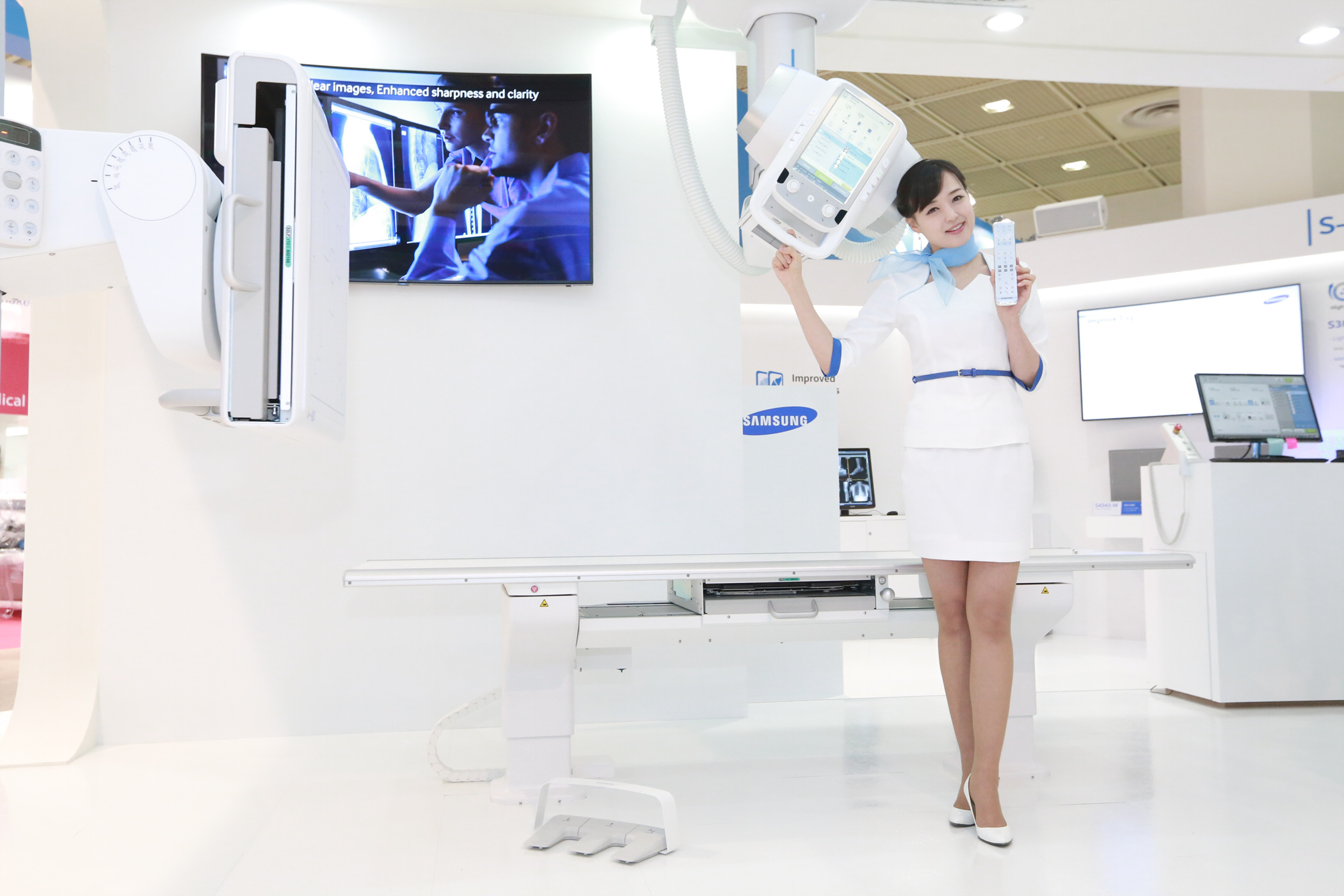 삼성전자는 5~8일 서울 삼성동 코엑스에서 열리는 제31회 'KIMES 2015 (국제의료기기 & 병원설비전시회)'에 참가해 디지털 엑스레이, 초음파 진단기기, 이동형 CT 등 신제품을 포함한 주요 영상진단기기 9종을 선보인다. 사진은 삼성전자 전시장에서 삼성전자 전시 도우미들이 의료기기를 소개하는 모습.