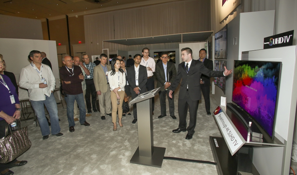 삼성전자가 3월 2일부터 5일까지 미국 올랜도 힐튼 호텔(Hilton Hotel Orlando)에서 북미 딜러 서밋 행사를 개최했다. 사진은 삼성전자 파트너들이 2015년 신제품 SUHD TV를 살펴보고 있는 모습.