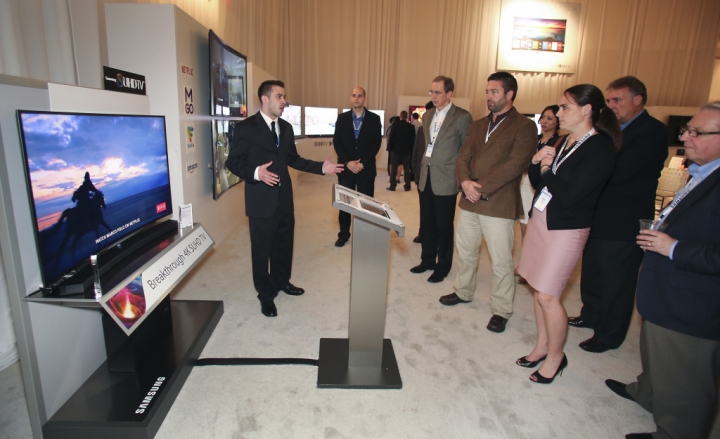 삼성전자가 3월 2일부터 5일까지 미국 올랜도 힐튼 호텔(Hilton Hotel Orlando)에서 북미 딜러 서밋 행사를 개최했다. 사진은 삼성전자 파트너들이 2015년 신제품 SUHD TV를 살펴보고 있는 모습.