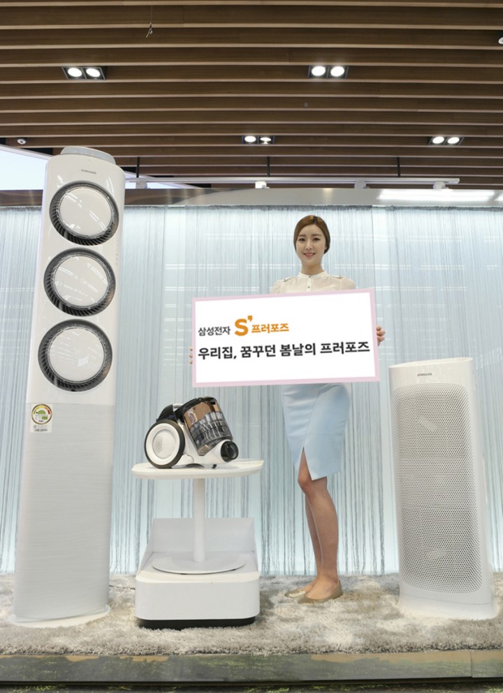 삼성전자 모델이 14일 삼성 디지털프라자 홍대점에서 황사와 미세먼지로부터 건강을 지켜주는 풍성한 선물이 가득한 '우리집, 꿈꾸던 봄날의 프러포즈' 이벤트를 소개하고 있다.