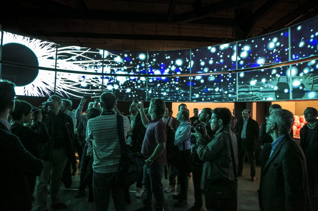 이태리 밀라노에서 14일(현지시간) 개막한 밀라노 가구박람회에서 삼성전자가 '몰입의 경험으로 만나는 IoT 세상'을 주제로 65형 SUHD TV 36대를 활용해 별도의 특별전시회를 개최했다.