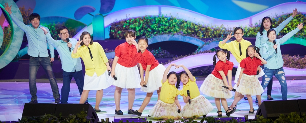 4월 18일 서울 KBS홀에서 열린 '제30회 초록동요제'에서 대상을 수상한 '무지갯빛 하모니'를 들려준 '채윤, 환미, 채원, 유경이네 가족(이유경 외 12명)'