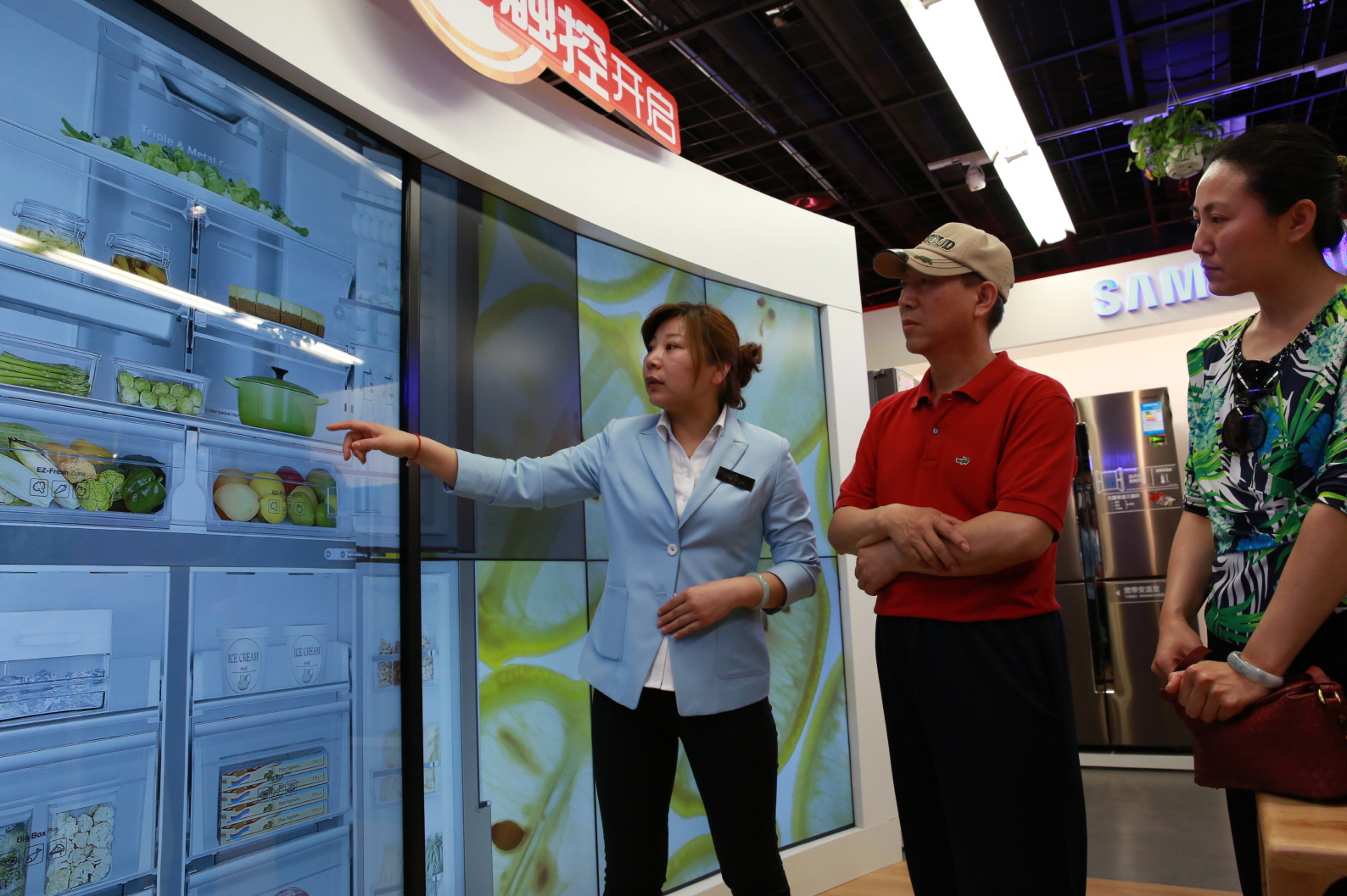 삼성전자 직원이 24일(중국 현지시간) 중국 베이징 궤메이 매장의 삼성 오픈하우스에서 센터스테이지를 소개