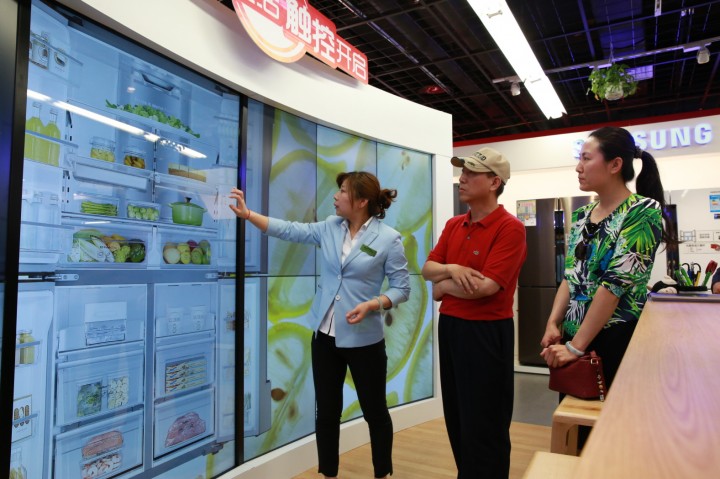 삼성전자 직원이 24일(중국 현지시간) 중국 베이징 궤메이 매장의 삼성 오픈하우스에서 센터스테이지를 소개