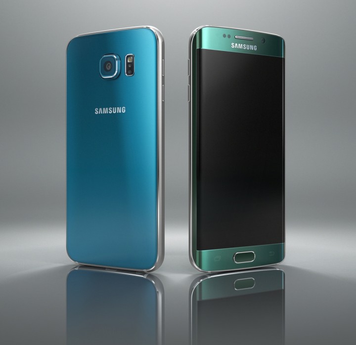 모델이 ‘갤럭시 S6’ 블루 토파즈와 '갤럭시 S6 엣지' 그린 에메랄드 제품