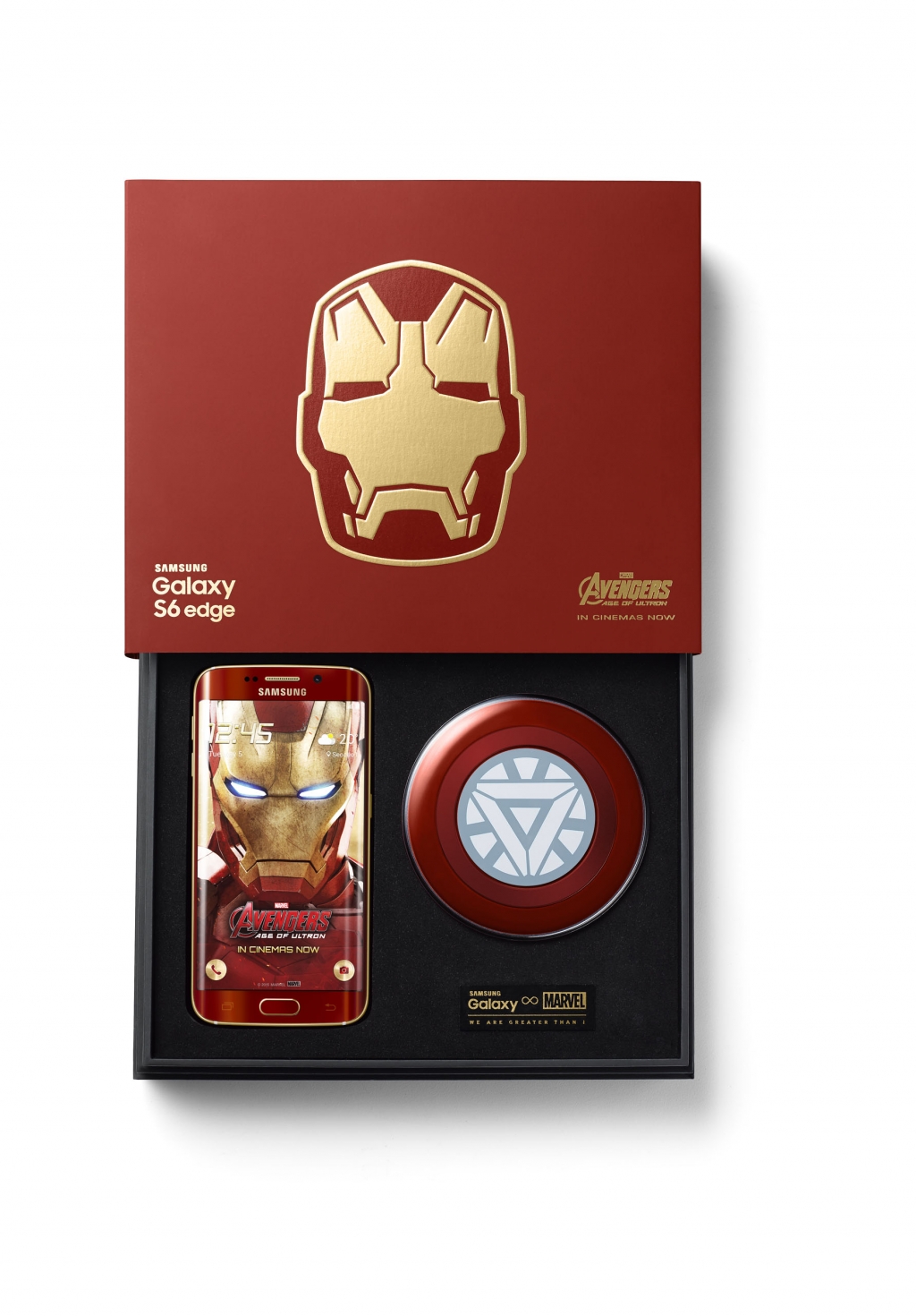 ‘갤럭시 S6 엣지 아이언맨 에디션’은 64GB용량으로 국내 3개 이동통신사 모두 출시되며, 기본 구성품과 함께 아크원자로 모양의 무선 충전기, 삼성 정품 클리어 커버가 포함된 특별 패키지로 구성됐다.