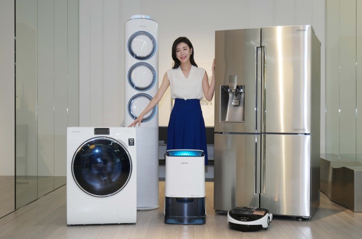 삼성전자 모델이 18일 삼성전자 수원사업장 생활가전동 프리미엄 하우스에서 '인버터 컴프레서'와 '인버터 모터'의 무상보증 기간이 10년으로 일원화된 삼성 생활가전 제품들을 소개하고 있다.