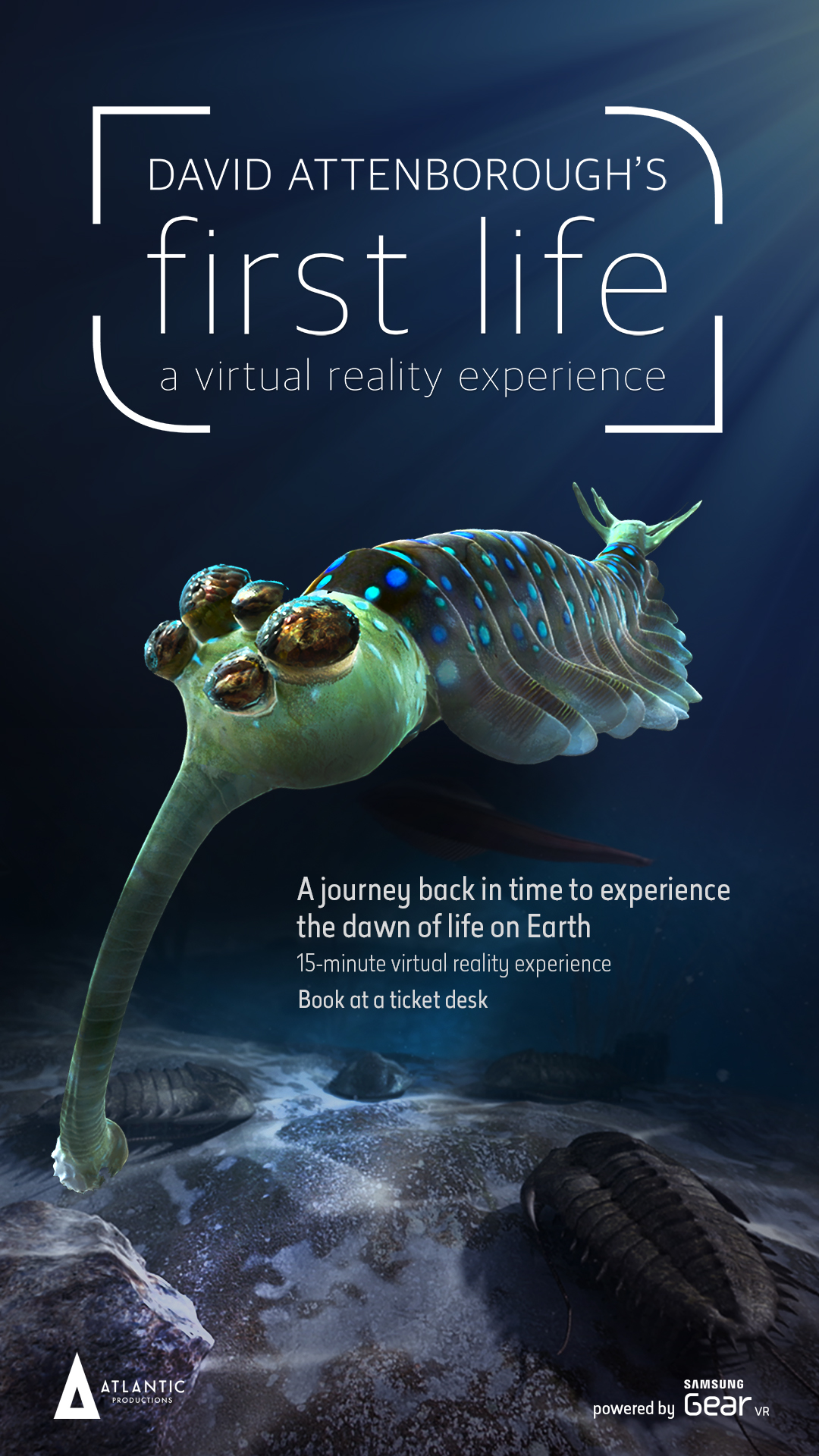 사진은 갤럭시 S6와 기어 VR를 통해 540만 년 전 지구 최초의 해양 생태계를 체험하는 '데이비드 아텐보로의 최초의 생명(David Attenborough’s First Life)' 프로그램 포스터