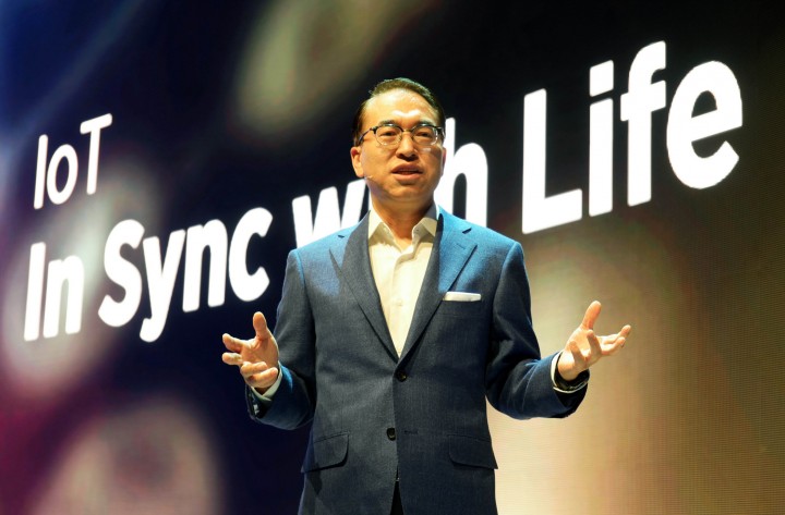 삼성전자 글로벌마케팅실 홍원표 사장이 베를린에서 열리는 IFA 2015 전시회 개막에 앞서 3일(현지 시각),‘In Sync with Life'를 주제로 소비자의 삶과 융화되는 IoT에 대한 비전을 발표했다.