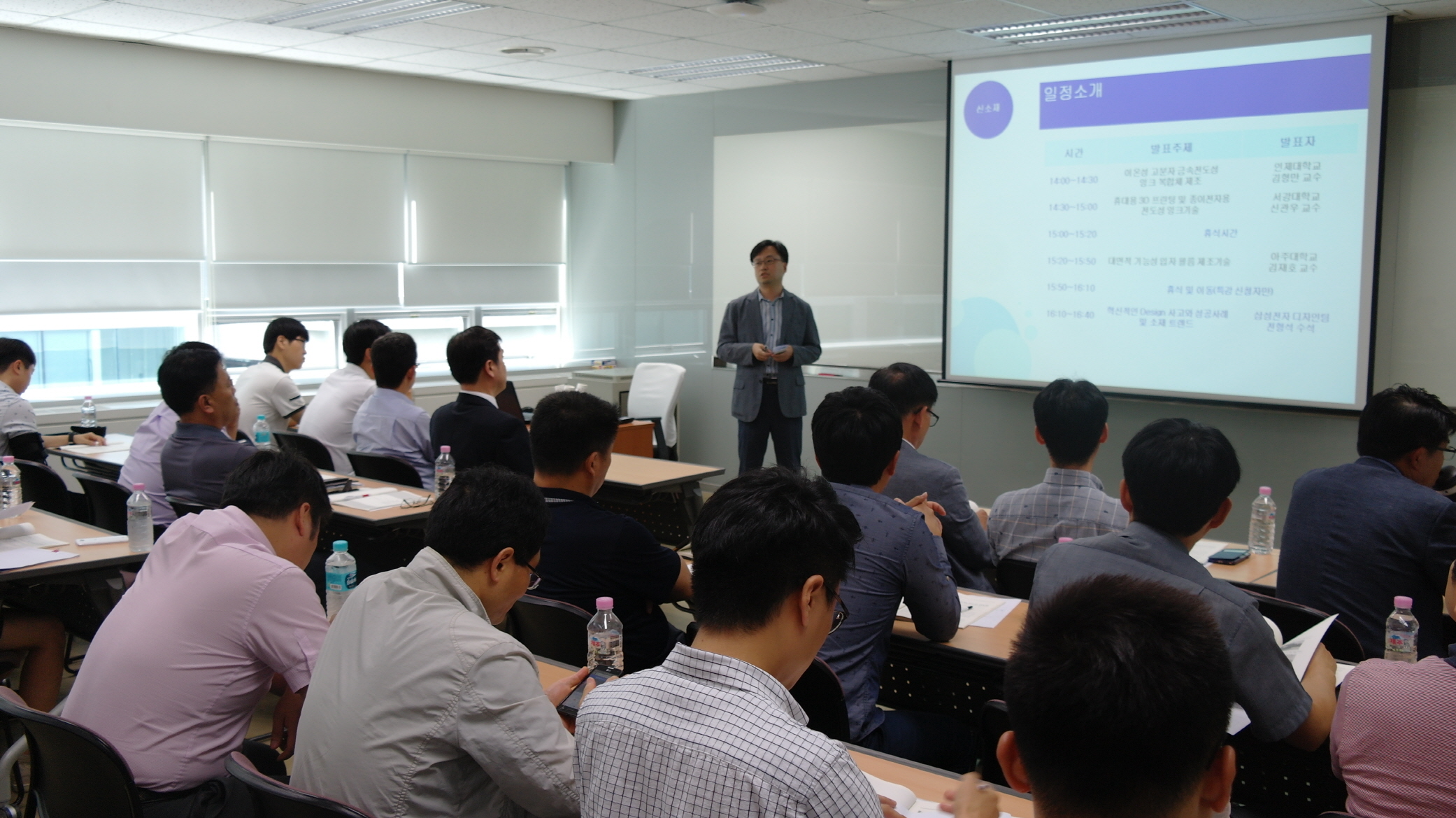 9월 3일 수원 삼성전자 상생협력아카데미에서 열린 '2015년 기술이전 박람회'에서 안영모 삼성전자 상생협력센터 차장이 삼성전자 협력사 임직원들에게 행사를 소개하고 있다.