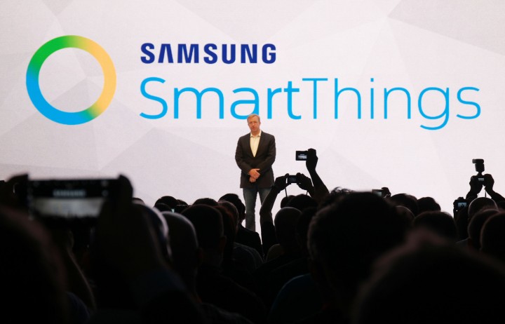 스마트싱스의 대표 알렉스 호킨슨이 3일(현지 시각) IFA 2015의 삼성전자 프레스컨퍼런스에서 스마트 싱스 신제품을 소개했다.