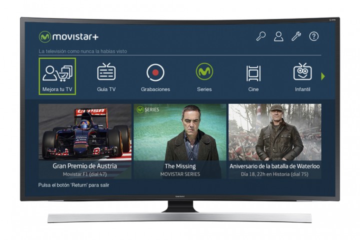 스페인 통신사 텔레포니카의 IPTV서비스 '무비스타 플러스' 애플리케이션이 삼성전자 스마트TV에 설치되어 셋톱박스 없이 '무비스타 플러스' IPTV 서비스가 제공되는 메인 화면의 모습