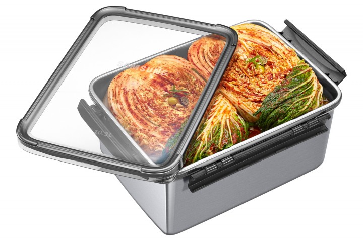 스테인리스 소재로 제작되어 냉기를 오래 보존해 김치를 더 차갑고 아삭하게 보관해 주는 '메탈쿨링김치통’