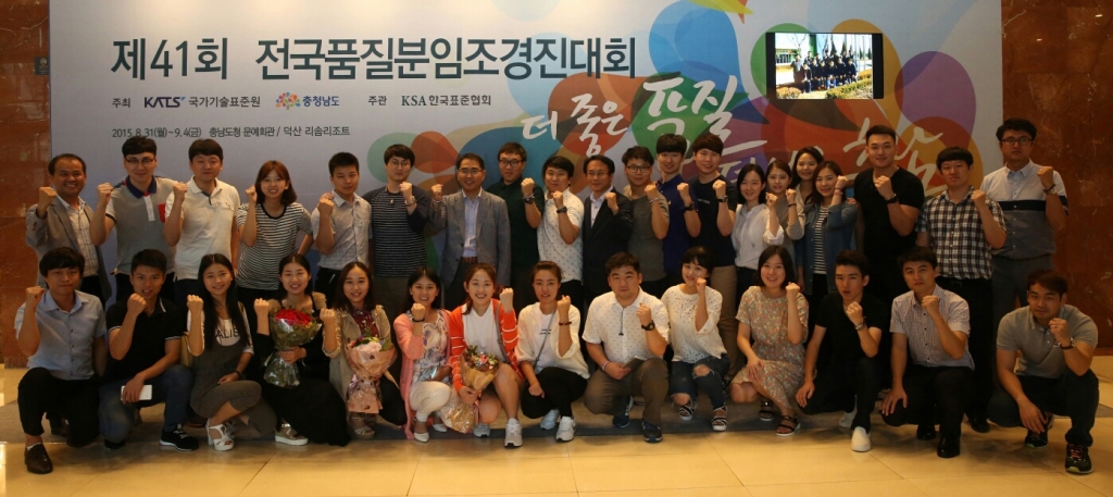 제41회 전국품질분임조 경진대회에서 출전한 삼성전자 무선사업부 직원들이 수상 확정 후 기념 촬영을 하는 모습