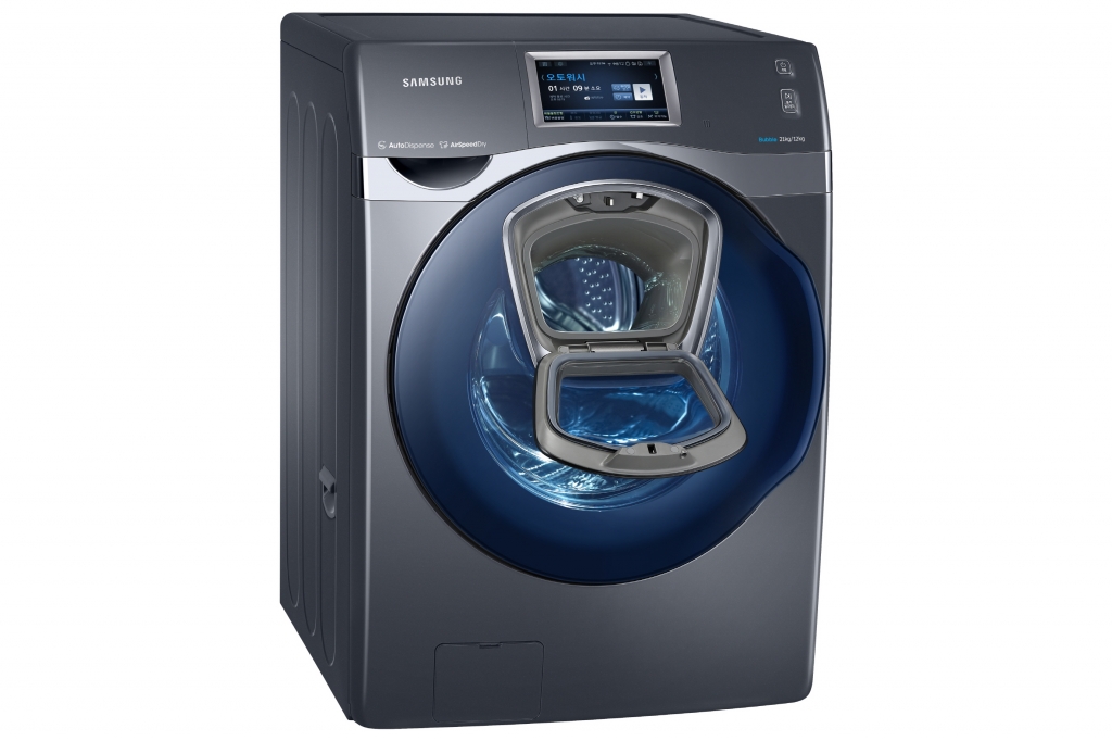 세계 최초로 도어에 작은 창문인 ‘애드윈도우’를 채용해 언제든지 세탁물을 간편하게 추가 할 수 있는 삼성 ‘버블샷 애드워시’드럼세탁기