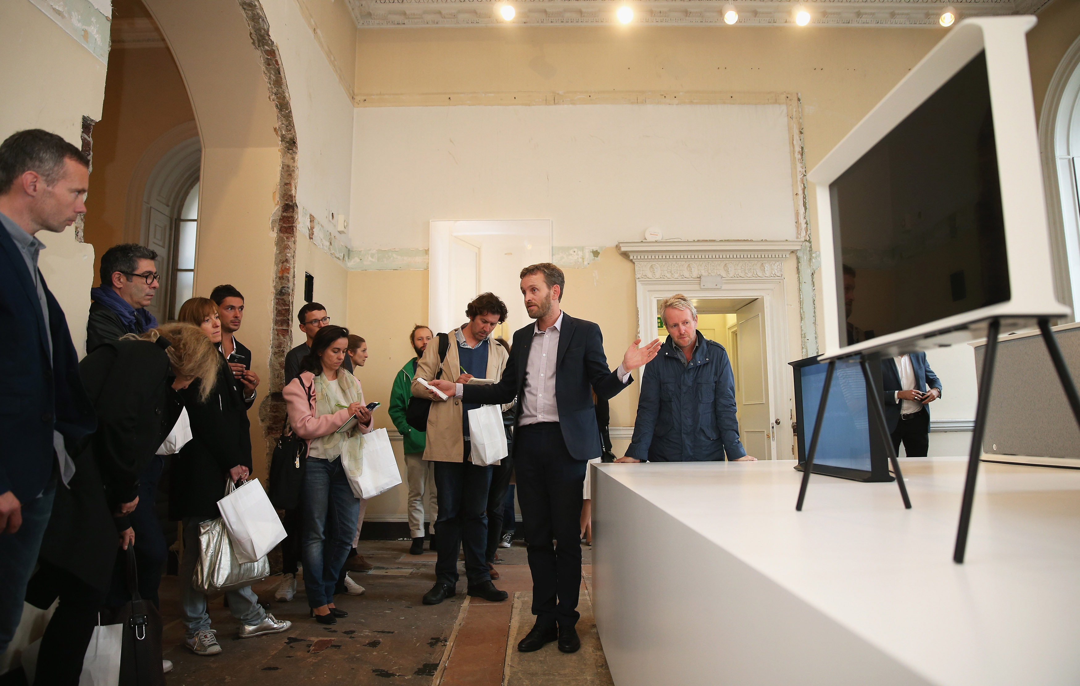 삼성전자가 세계적인 가구 디자이너 로난 & 에르완 부훌렉 (Ronan & Erwan Bouroullec) 형제가 디자인한 '삼성 세리프 TV (Samsung Serif TV)를 현지시간 21일 런던 디자인 페스티벌(London Design Festival)에서 공개했다. 관람객들에게 디자이너 부훌렉 형제가 제품 디자인에 대해 설명하고 있다. (1번 사진에서 오른쪽에서 첫번째 사람이 로난 부훌렉, 두번째 사람이 에르완 부훌렉)