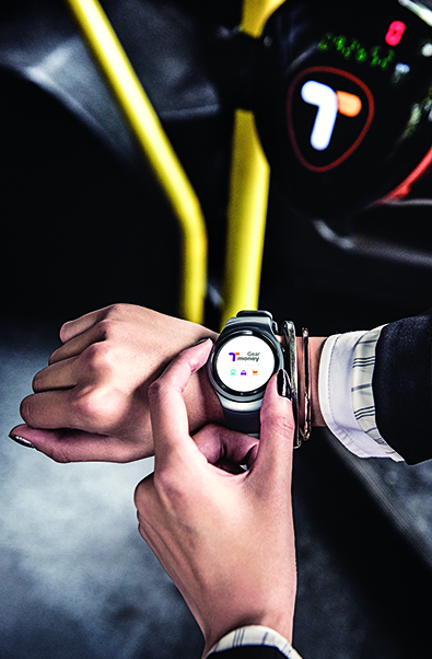 '기어 S2'의 '티머니'를 통해 버스에 탑승하는 모습