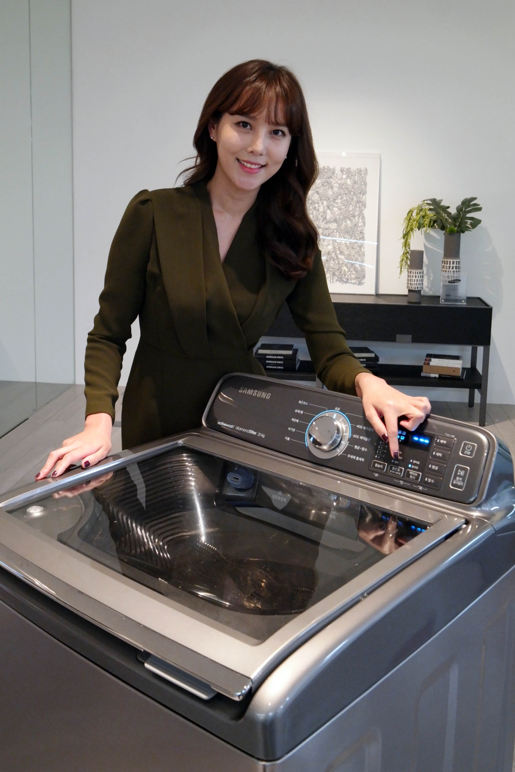 삼성전자 모델이 4일 따뜻한 미온수로 애벌빨래 기능을 강화한 2016년형 '액티브워시' 세탁기를 소개하고 있다. 2016년형 '액티브워시' 세탁기는 ‘워터젯’에서 급수되는 물의 온도를 필요에 따라 ‘물온도’버튼으로 간단하게 냉수와 미온수 중 선택할 수 있어 한층 편리하게 사용할 수 있고, 세탁력이 더욱 향상되는 효과까지 얻을 수 있다.
