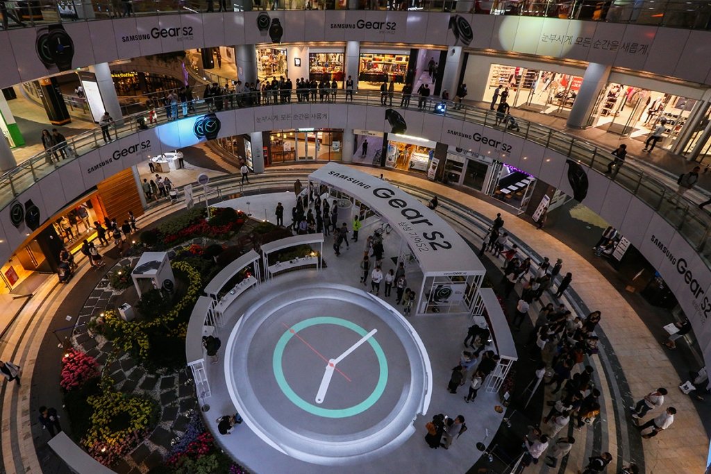 삼성전자, 대규모 원형 체험존으로 구성된 '기어 S2' 출시 행사 실시