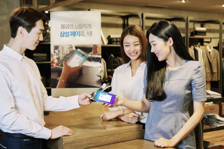 삼성전자의 모바일 결제서비스 삼성페이로 의류매장에서 결제하는 모습