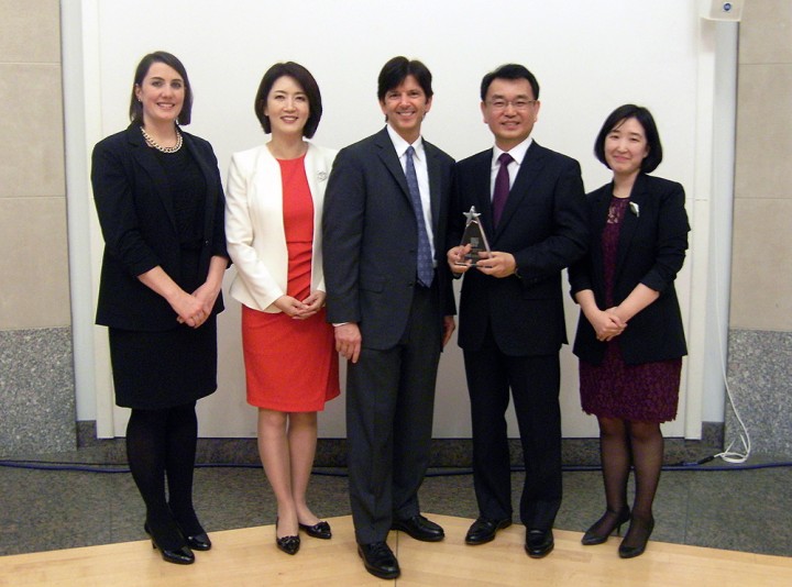 이영순 삼성전자 인재개발원 상무, 토니 빙햄(Tony Bingham) ATD 회장, 이준수 삼성전자 인재개발원 전무(왼쪽에서 세 번째부터)