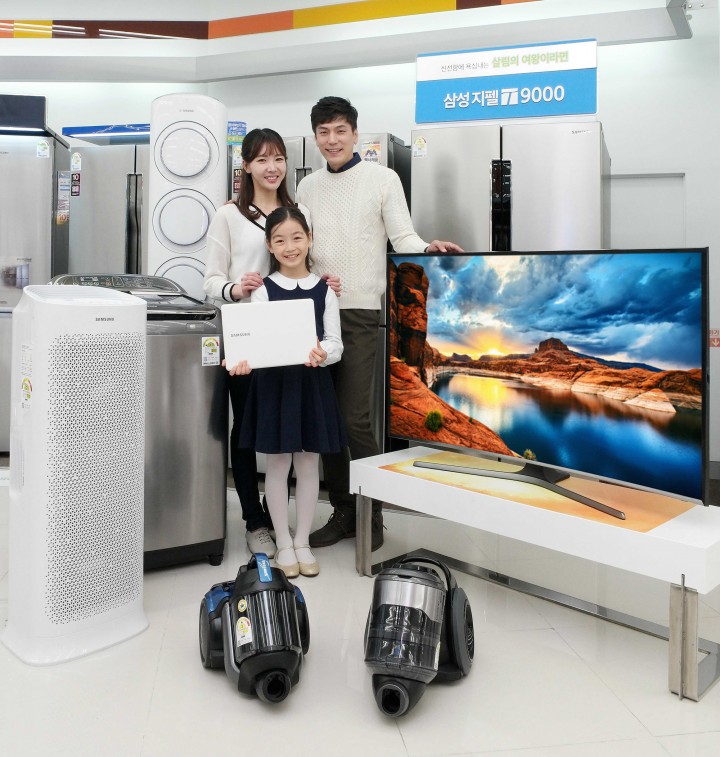 삼성전자 모델들이 20일 삼성 디지털프라자 홍대점에서 '삼성전자 S 골드러시 패밀리 세일'을 소개하고 있다. sc