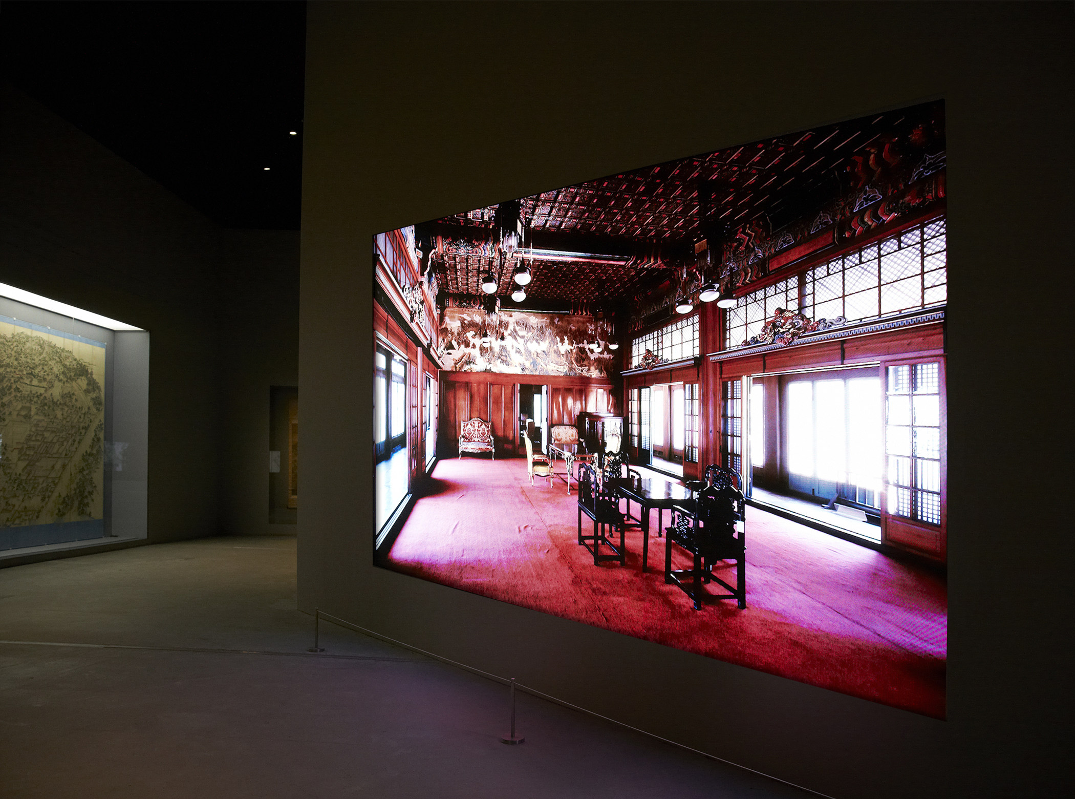 삼성미술관 Leeum의 기획전시실 설치된 173형 대형 스마트 LED 사이니지로 한국 대표 사진작가의 한국 전통 건축 사진과 동영상을 상영하고 있는 모습