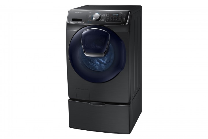'CES 2016' 혁신상 생활가전 부문 수상 제품으로 선정된 삼성 '애드워시' 드럼세탁기. 세계 최초로 세탁물 추가가 가능한 투입구인 ‘애드윈도우’를 도어 상단에 채용해 언제든지 세탁물을 간편하게 추가할 수 있다