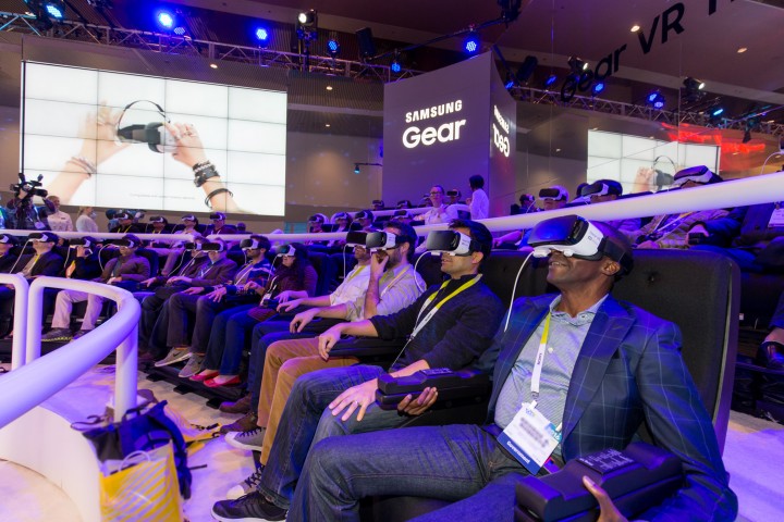 삼성전자가 6일(현지 시각)부터 9일까지 미국 라스베이거스에서 열리는 세계 최대 소비자 가전 전시회 CES 2016의 ‘삼성 갤럭시 스튜디오’에서 ‘기어 VR’과 4D 의자로 360도 입체 영상을 체험할 수 있는 ‘기어 VR 4D 체험존’을 운영한다.