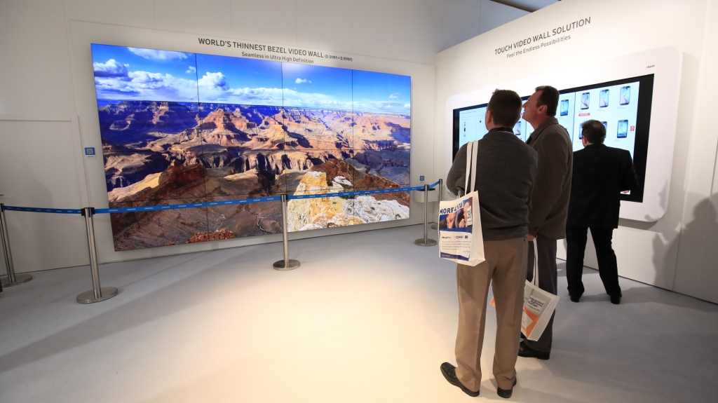 삼성전자는 ISE 전시회 참가 업체 중 최초로 전시장 내 최대 크기(1,415㎡)의 건물인 ‘암티룸 홀(Amtirum Hall)’을 단독으로 활용해 2016년 4대 주력 제품인 ▲LED 사이니지 ▲아웃도어 사이니지 ▲세계 최소 베젤 비디오월 ▲전자칠판 등 미래형 디스플레이를 대거 전시했다.