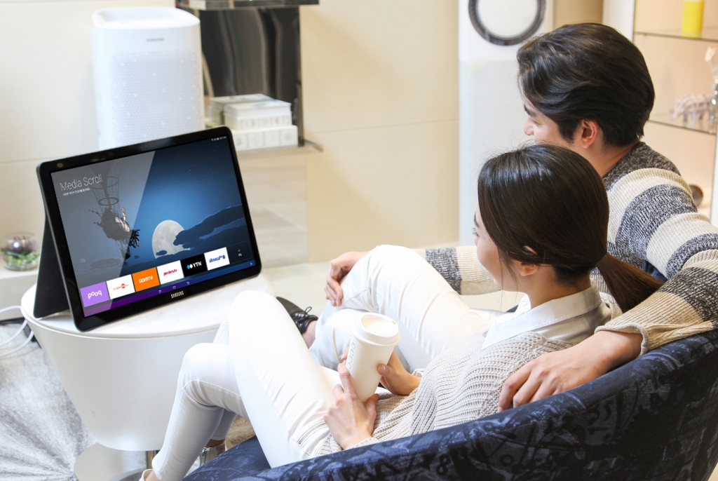‘갤럭시 뷰’는 대화면으로 언제 어디서나 자유롭게 컨텐츠를 즐길 수 있는 새로운 개념의 개인용 엔터테인먼트 기기이다.