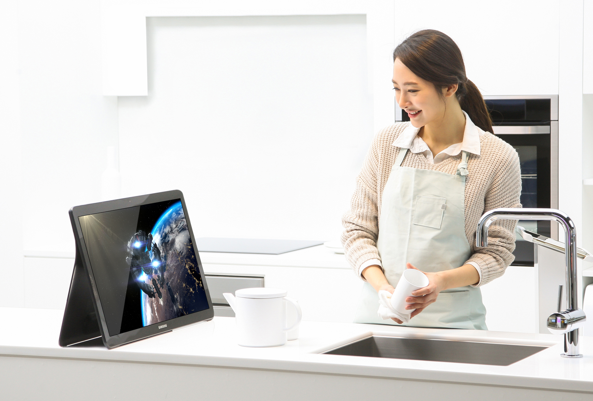 ‘갤럭시 뷰’는 대화면으로 언제 어디서나 자유롭게 컨텐츠를 즐길 수 있는 새로운 개념의 개인용 엔터테인먼트 기기이다.