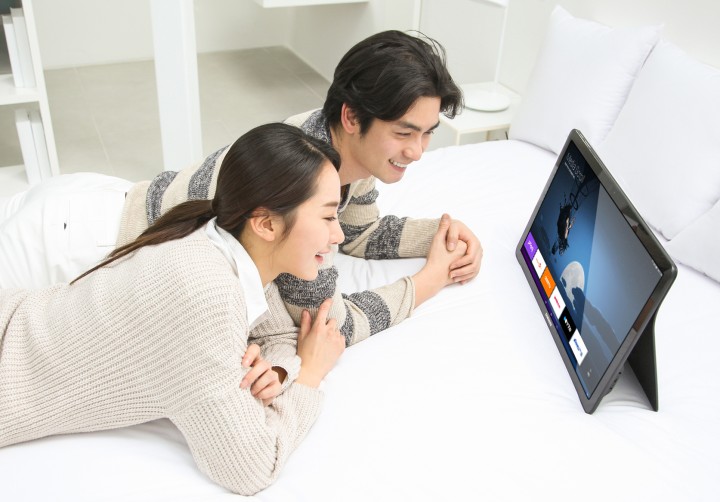 ‘갤럭시 뷰’는 대화면으로 언제 어디서나 자유롭게 컨텐츠를 즐길 수 있는 새로운 개념의 개인용 엔터테인먼트 기기이다.