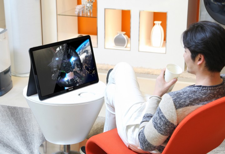 ‘갤럭시 뷰’는 대화면으로 언제 어디서나 자유롭게 컨텐츠를 즐길 수 있는 새로운 개념의 개인용 엔터테인먼트 기기이다.