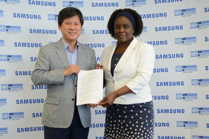 삼성전자와 유엔봉사단(United Nations Volunteers)은 18일(현지시간) 브라질 상파울루에서 삼성전자 중남미총괄 김정환 전무와 유엔봉사단 지식·혁신 부문 아만다 무크와시(Amanda Mukwashi) 팀장이 참석한 가운데 중남미 자원봉사 협력을 위한 파트너십을 체결했다.