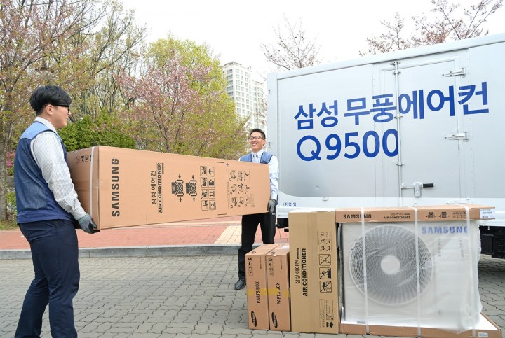 바람 없이도 시원한 삼성 무풍에어컨 'Q9500', 봄바람 타고 신바람나게 배송중