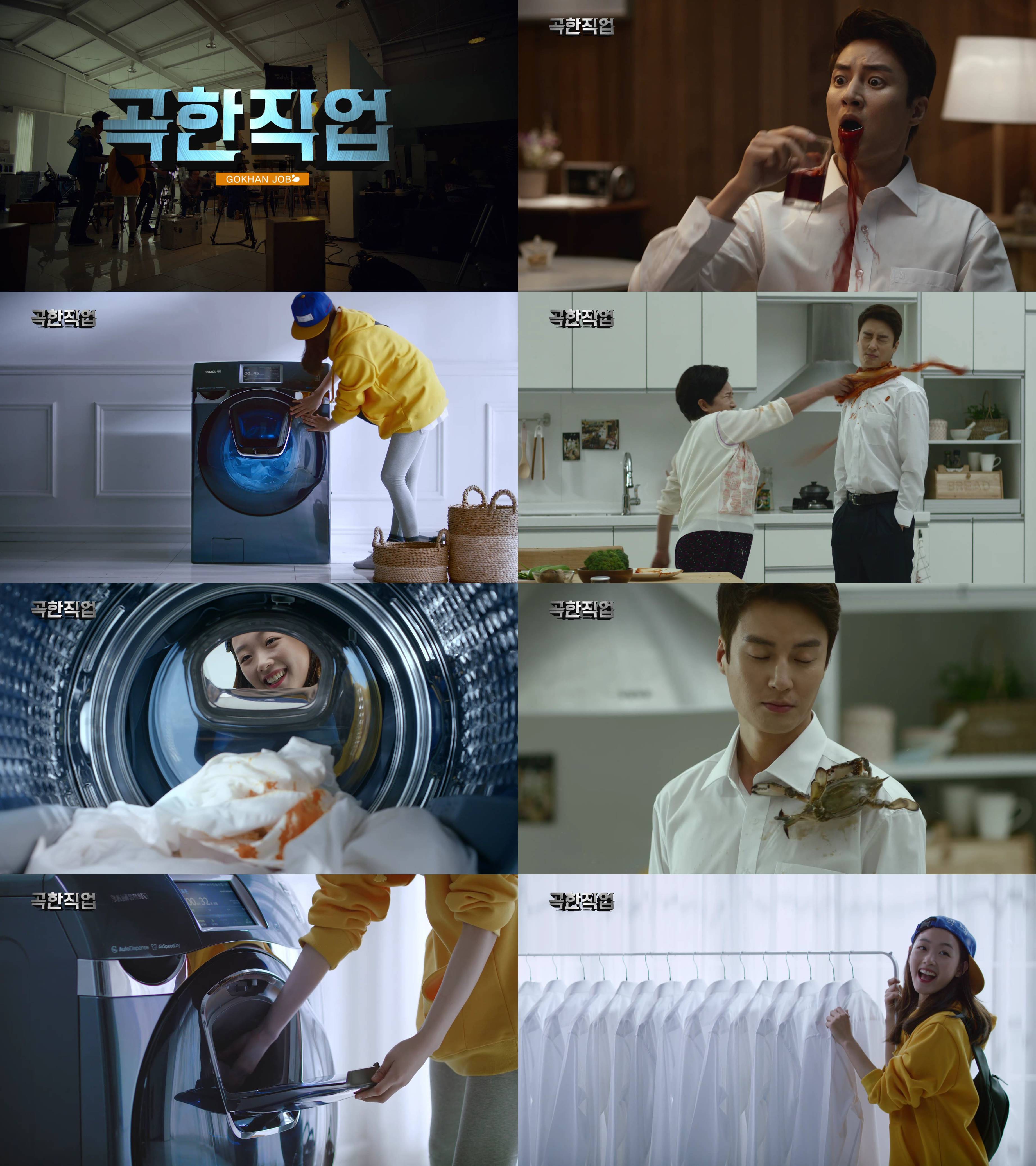 삼성전자는 '곡한직업-드라마 연출부 막내 편' 영상을 통해 드라마 촬영 현장을 배경으로 세탁 중간에 세탁물을 쉽게 추가할 수 있는 '애드워시' 세탁기만의 장점을 재미있게 표현했다.