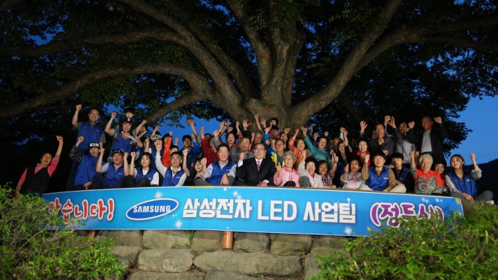 땅거미가 내리기 시작하는 시간 전북 무주의 한 농촌마을. 하나, 둘, 셋 구호와 함께 수십 개의 LED 보안등이 일제히 켜지자 큰 박수소리와 함께 주민들의 입가에 미소가 번졌다. 삼성전자가 업(業)의 특성을 살려 자매마을에 LED 보안등을 설치해 마을 주민들의 야간 안심 귀가를 돕는 사회공헌활동을 펼치고 있다.